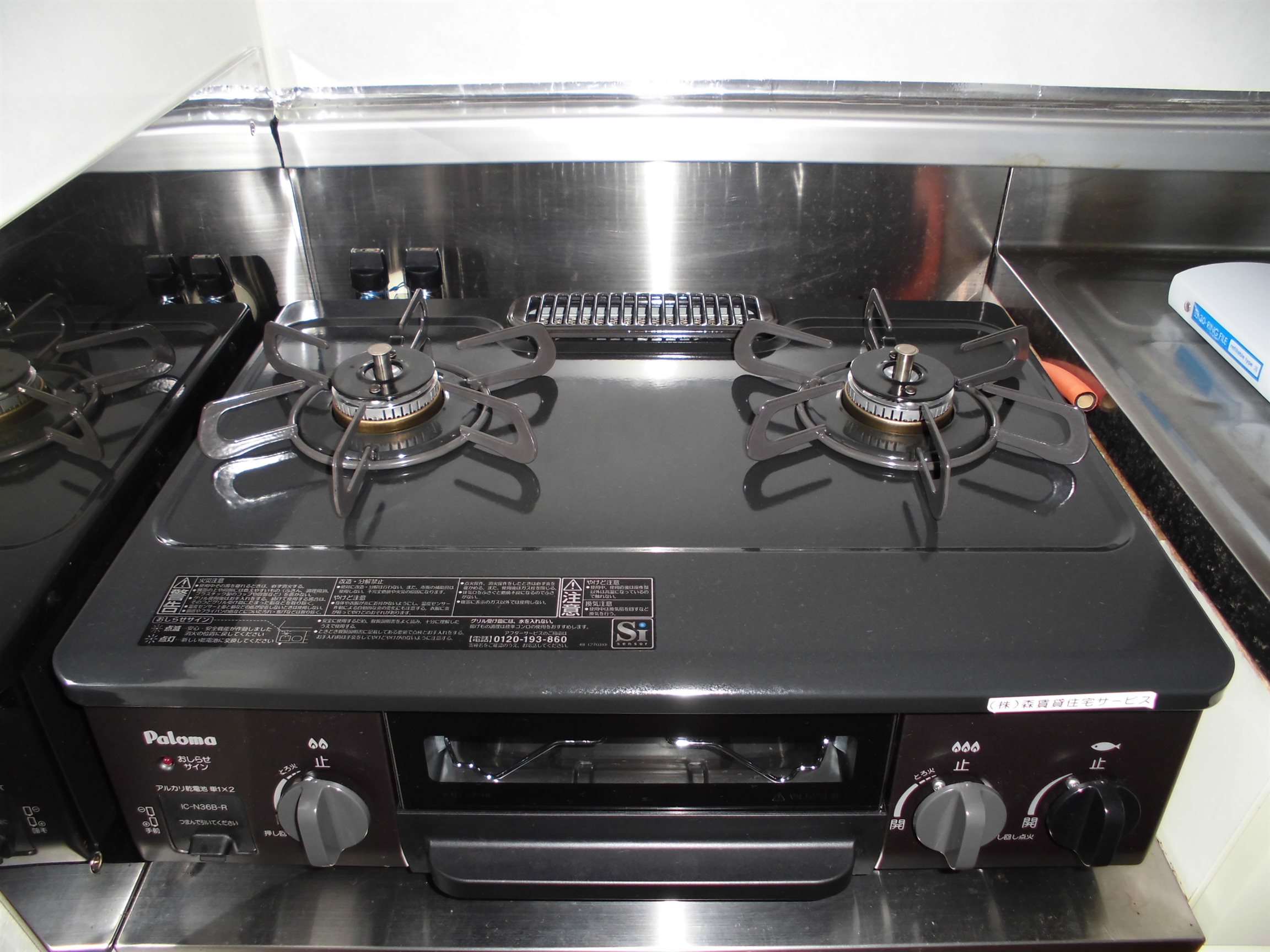 2口ガスコンロ(グリル付き)
